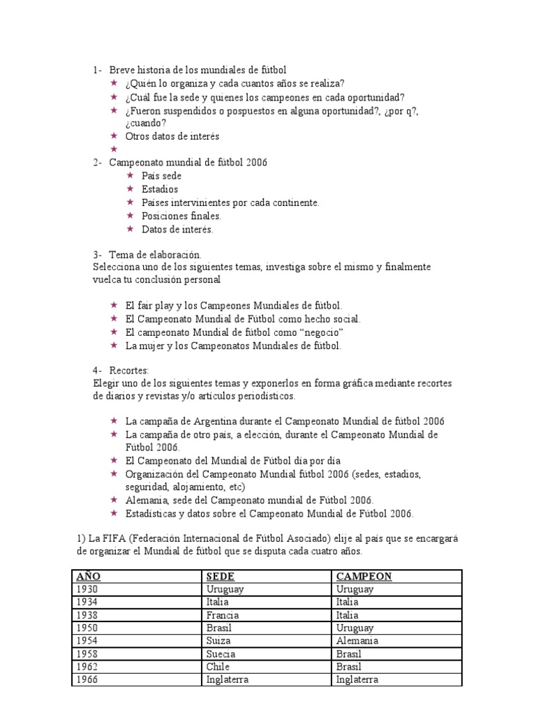 - El Mundial Y Su Historia , Información De Cada Una De Las Copas Del Mundo, Año Por Año, Con El Detalle De Todos Los Campeones, Los Resultados, Los Goles Y Más.